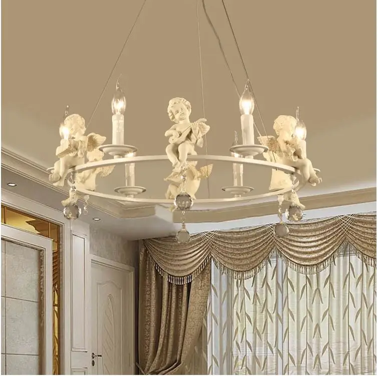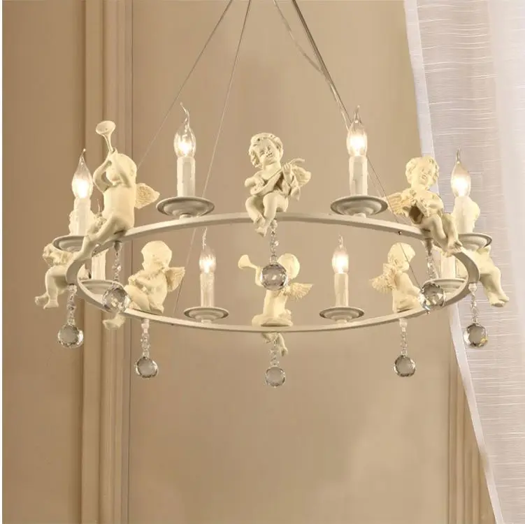 Modern Kids Room Chandelier Resin Angels Pendant Lamp With Decorative Crystal Bedroom Nursery Girl room Chandelier