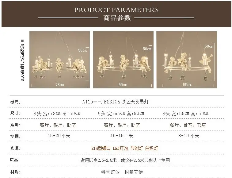 Materials: Iron Lamp body, Resin angels, Crystal pendant