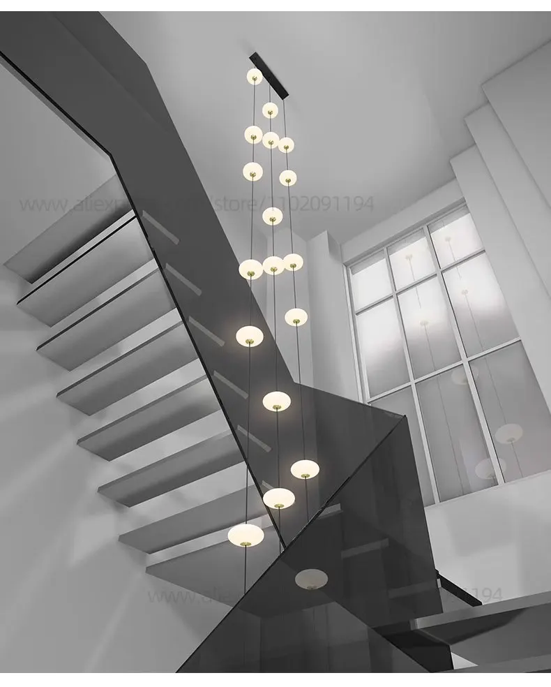 Take a look ✨: Long LED Pendant Lamp Hanging Modern Living Room Lamp Villa Staircase Pendant Lamp Spotlight Indoor Lighting Tubular Chandelier
