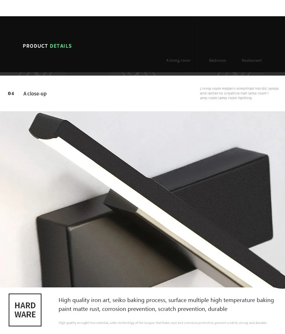 Rechargeable Wall Lamp 30/60/80CM Hardware Rotatable Bathroom Mirror Light For Bedroom Living Room Indoor Line LED Wall Sconces