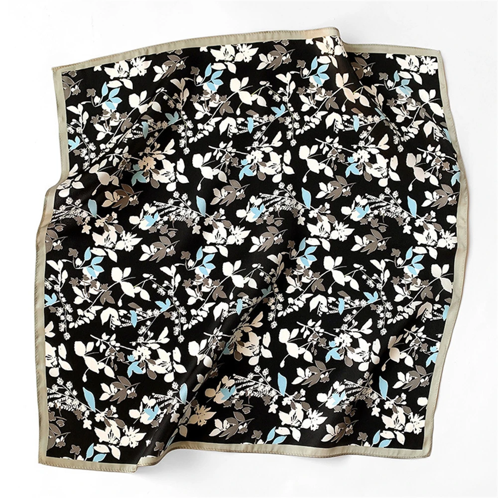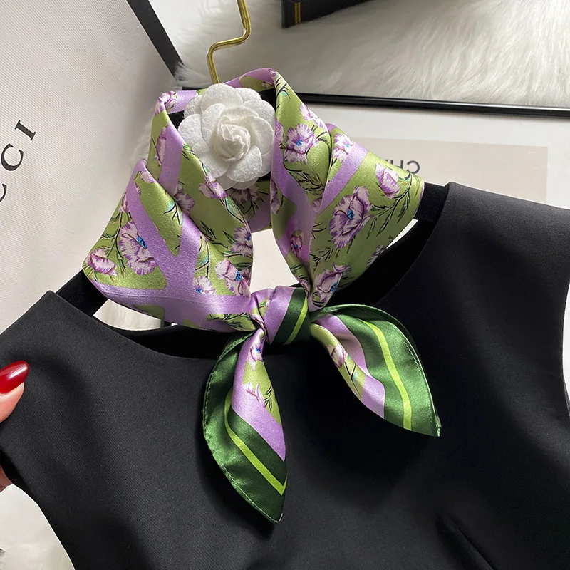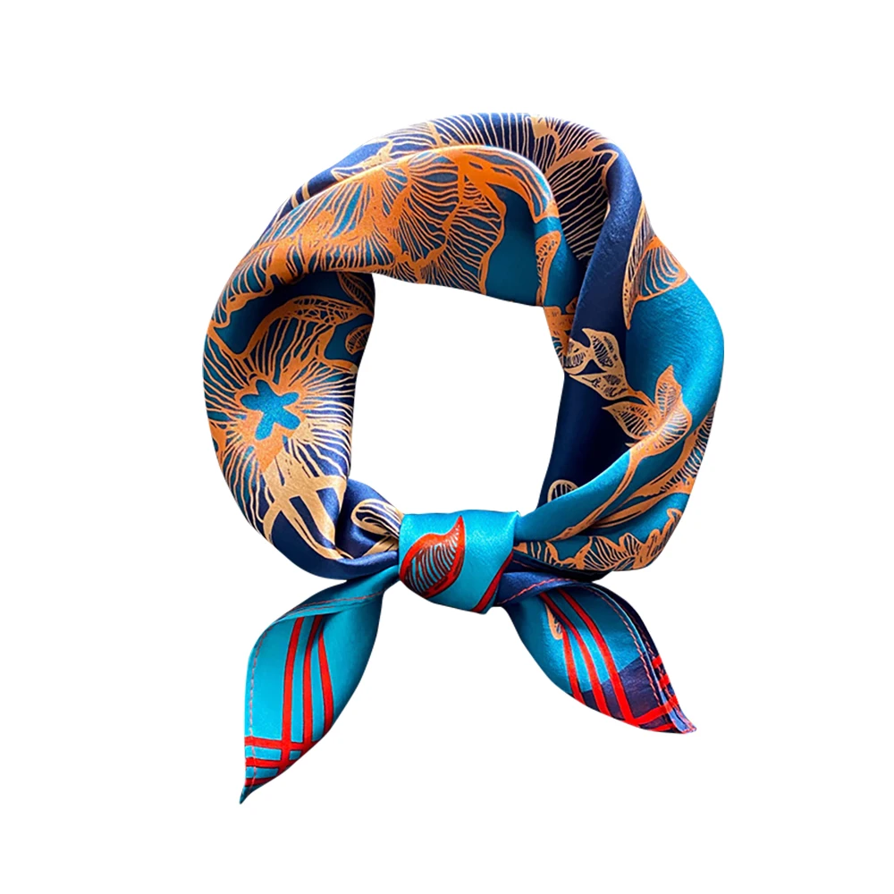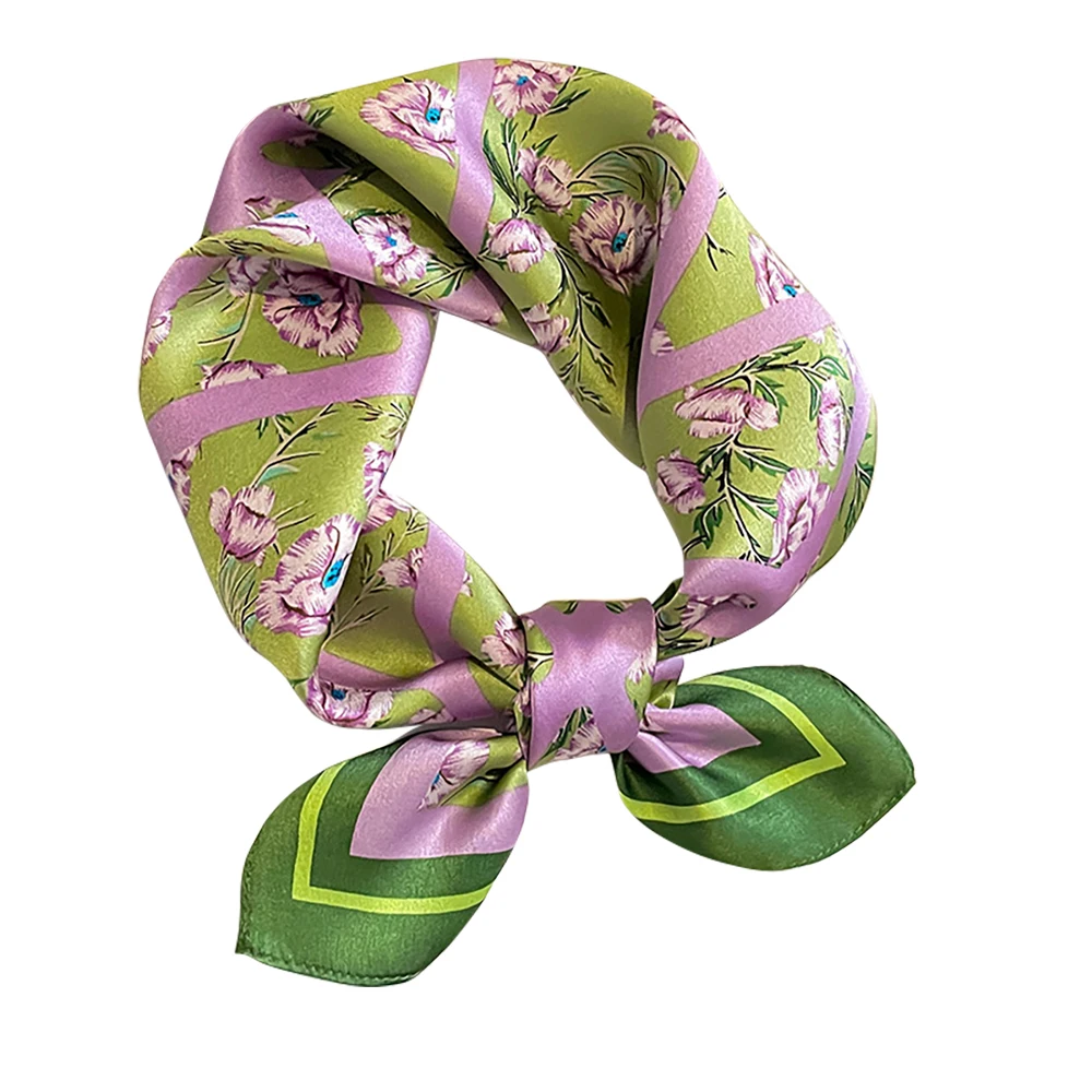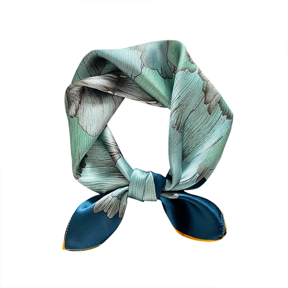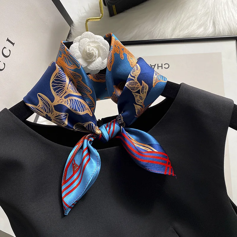 Women 100% Mulberry Real Silk Scarf 53cm Luxury Kerchief Spring Autumn Neckerchief Brand Headband Flowers Hijab Handbag Decorate