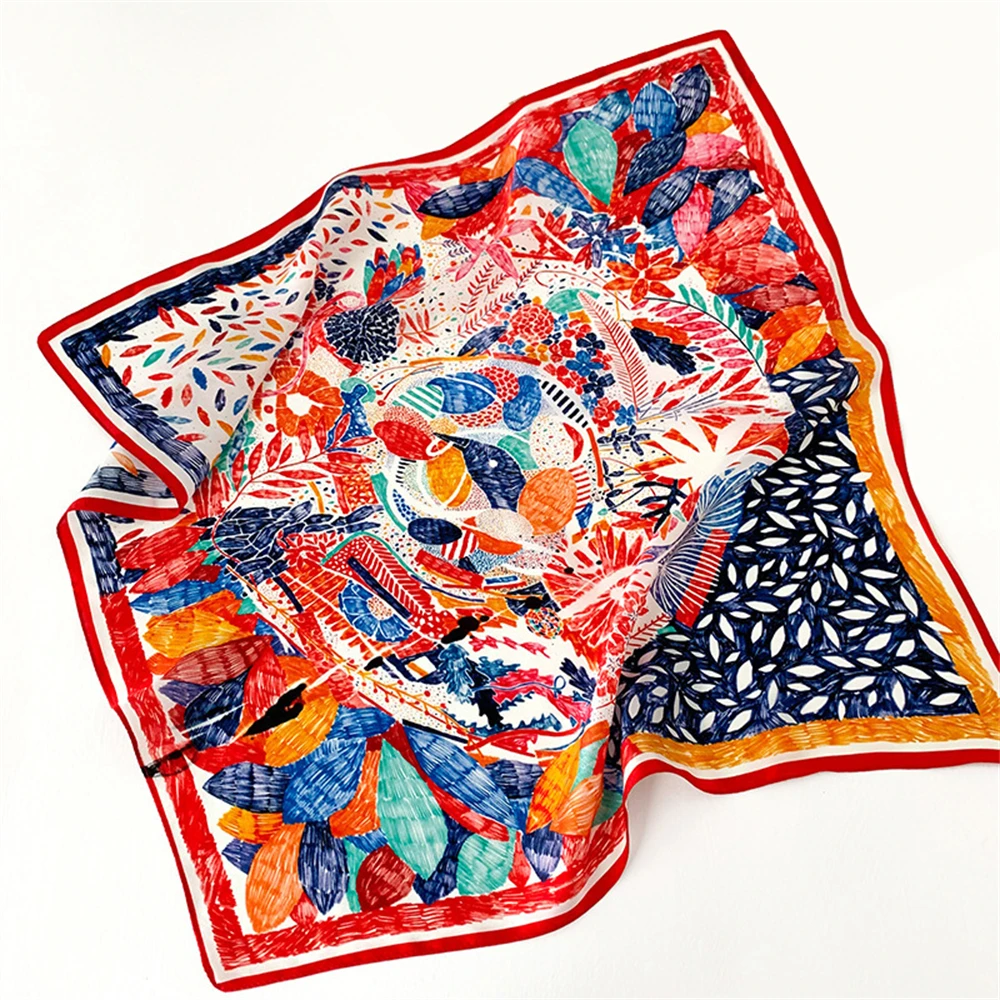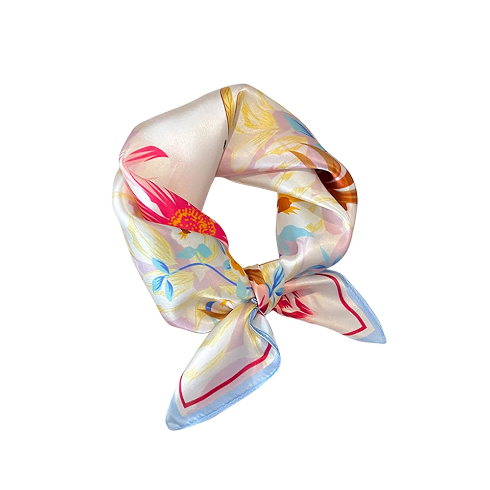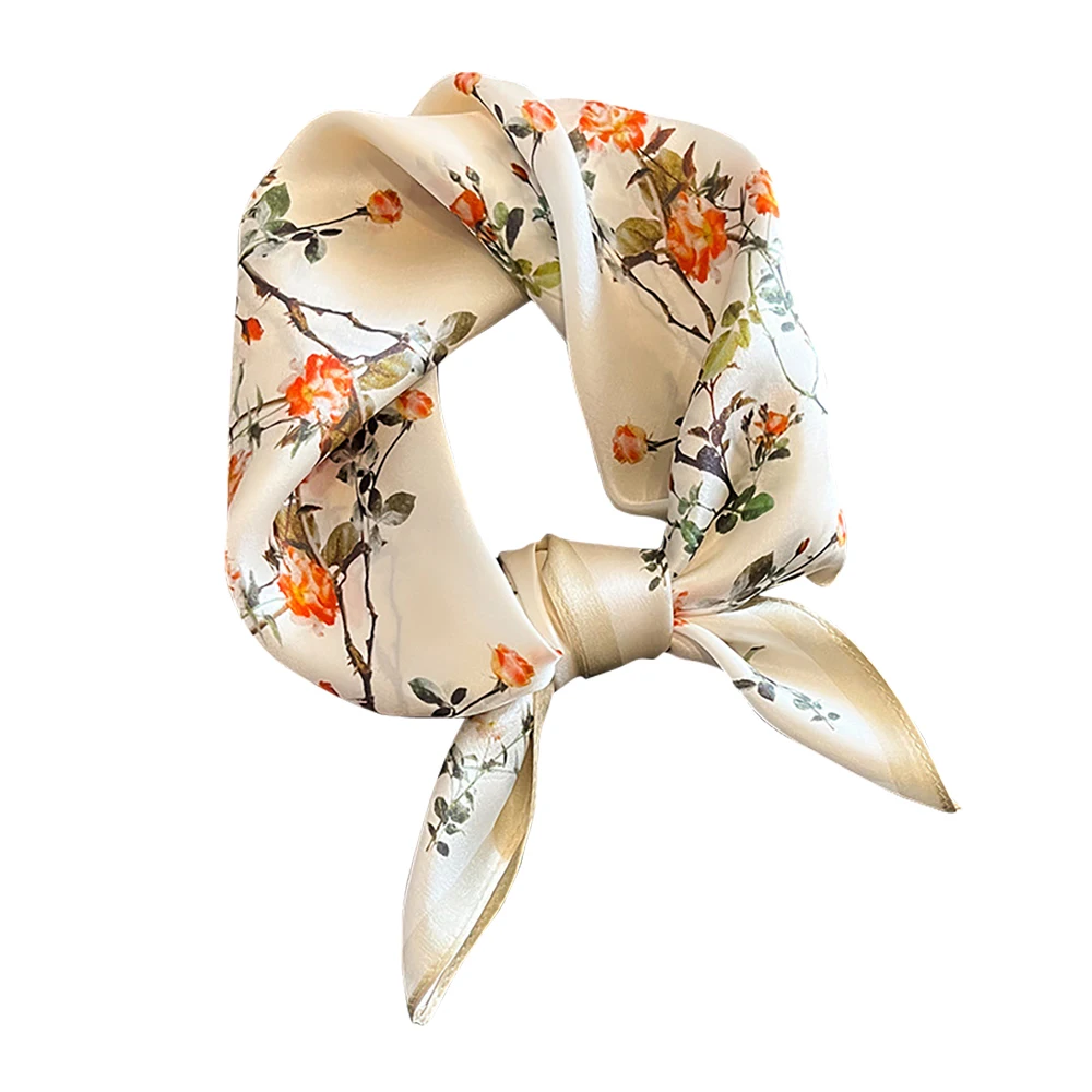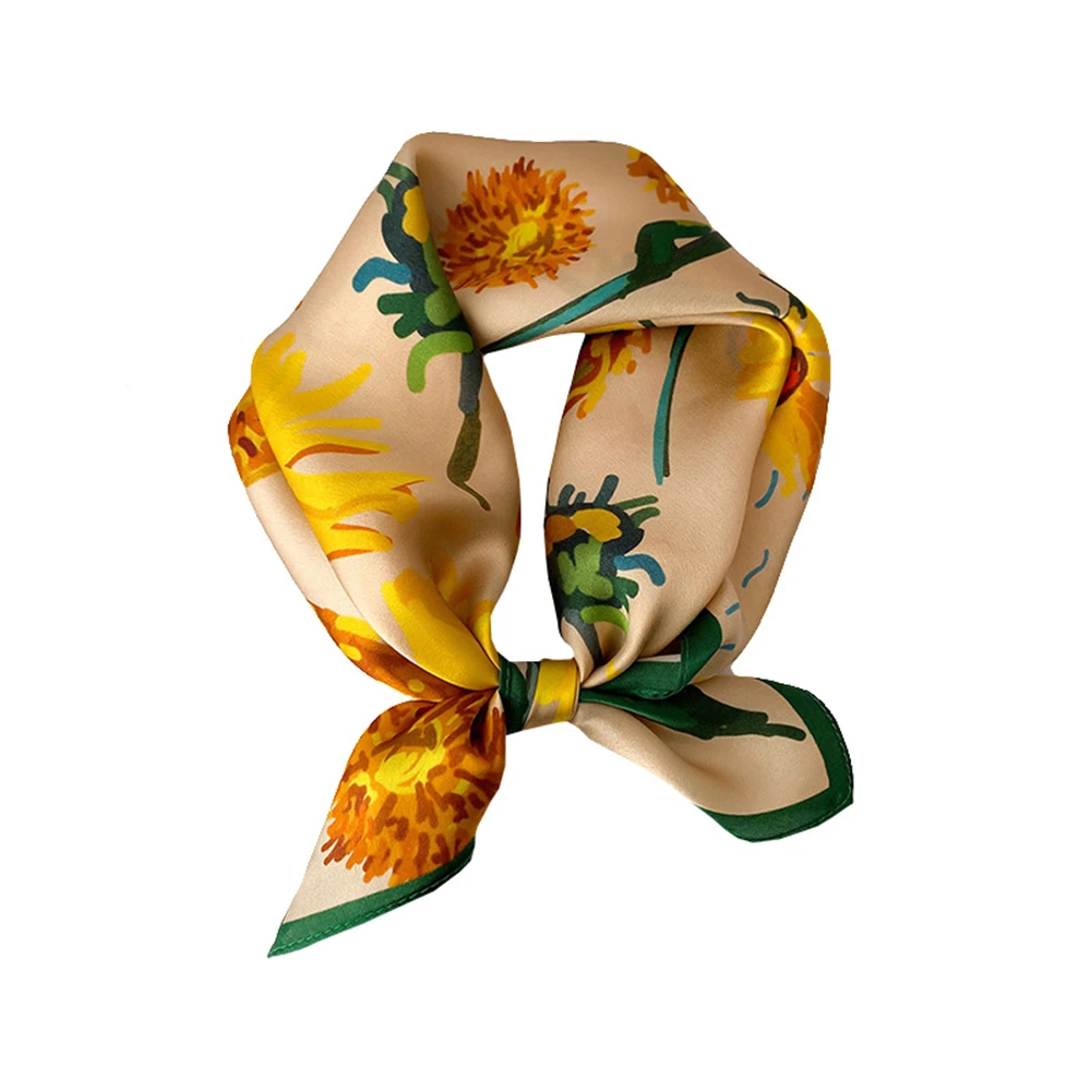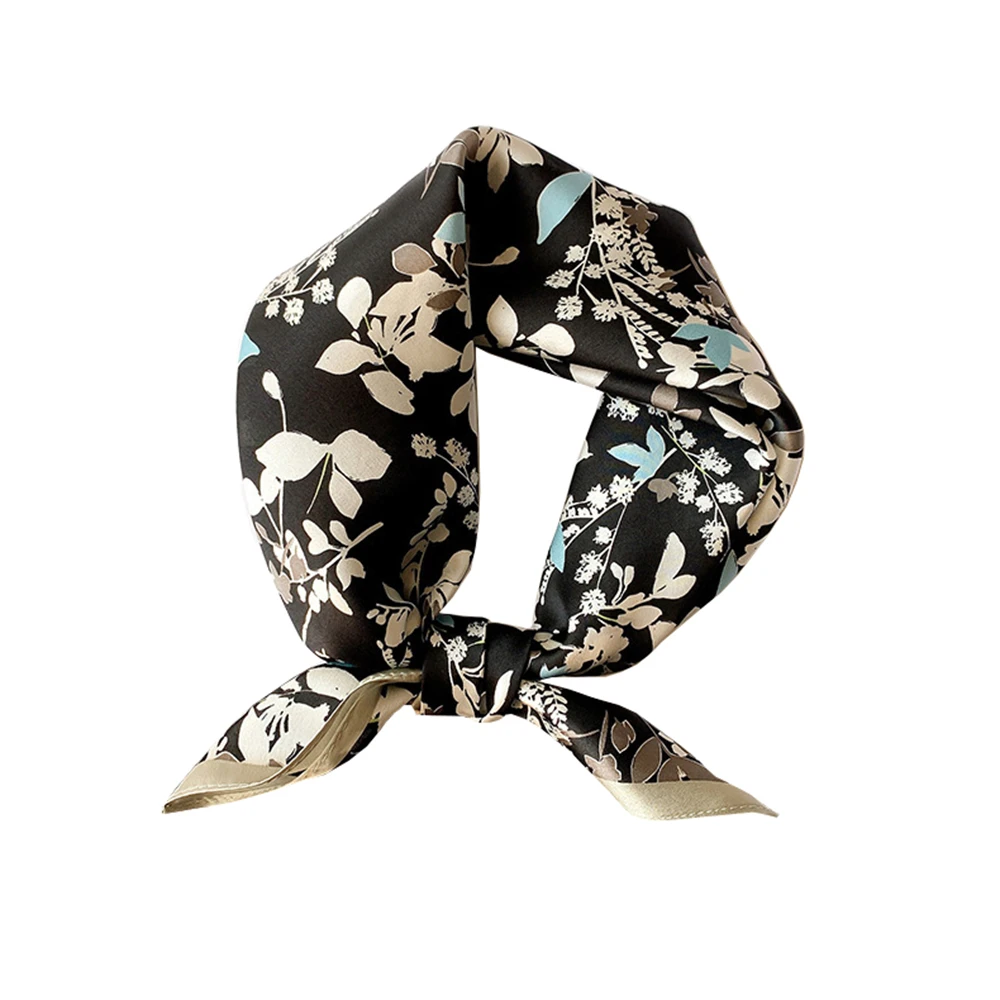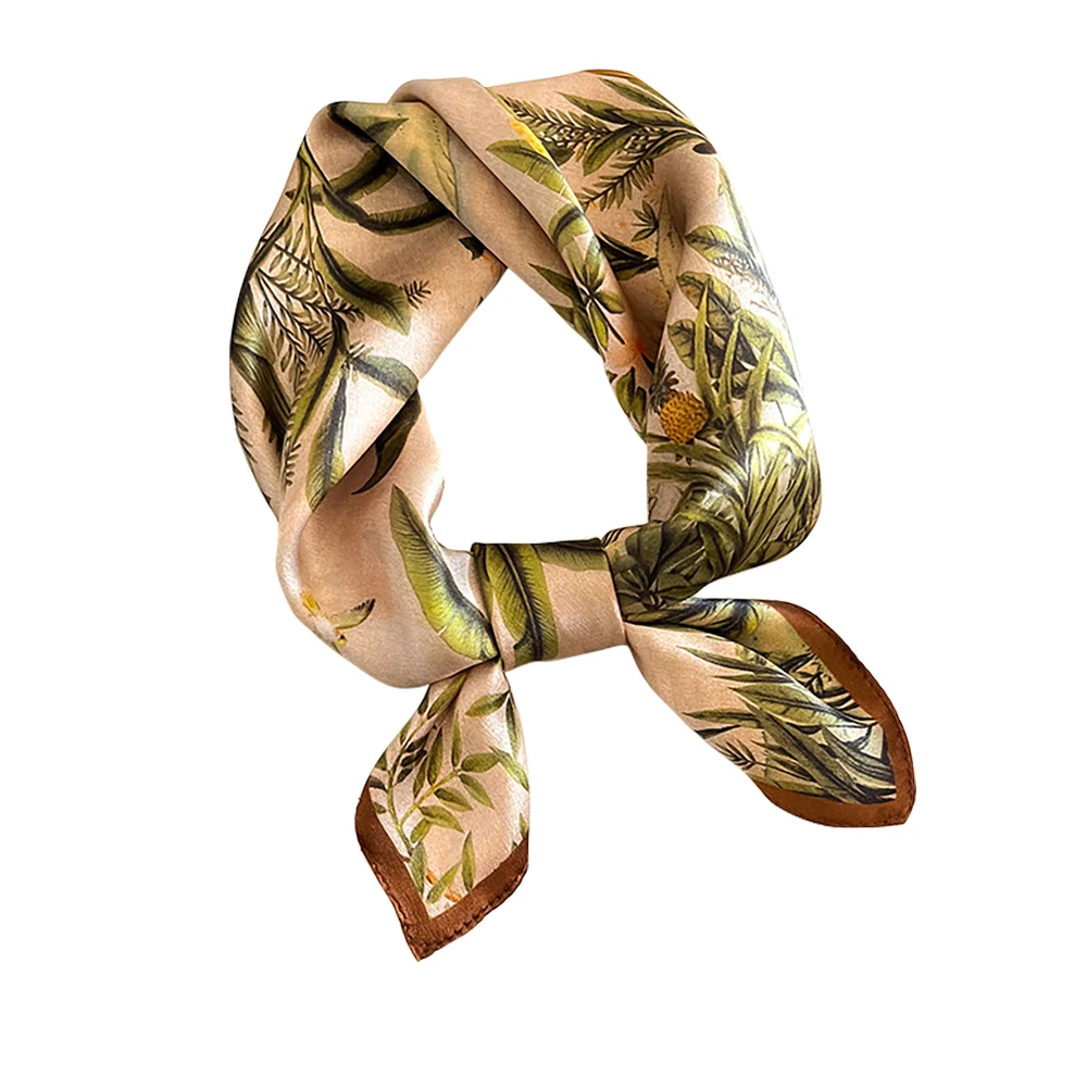Women 100% Mulberry Real Silk Scarf 53cm Luxury Kerchief Spring Autumn Neckerchief Brand Headband Flowers Hijab Handbag Decorate