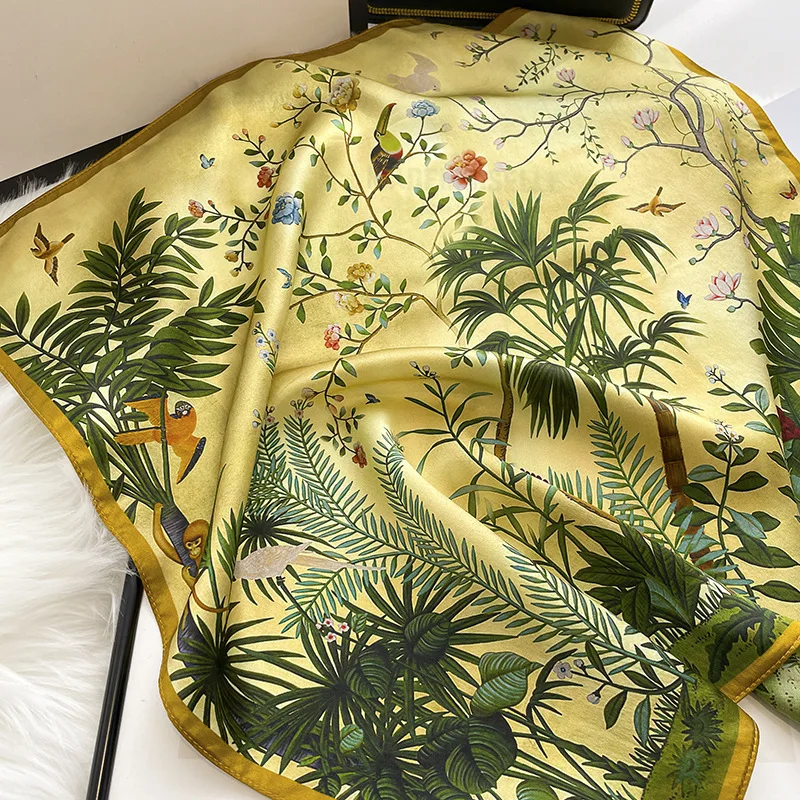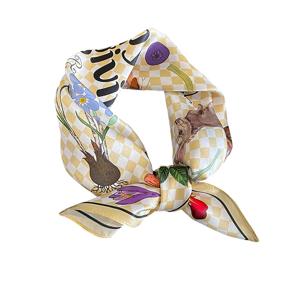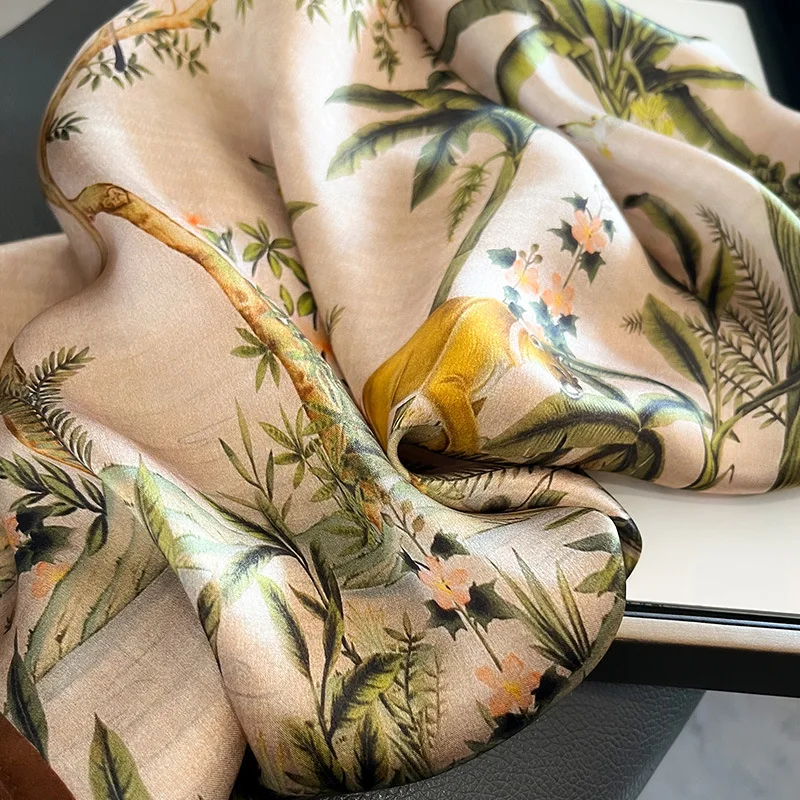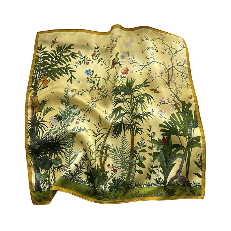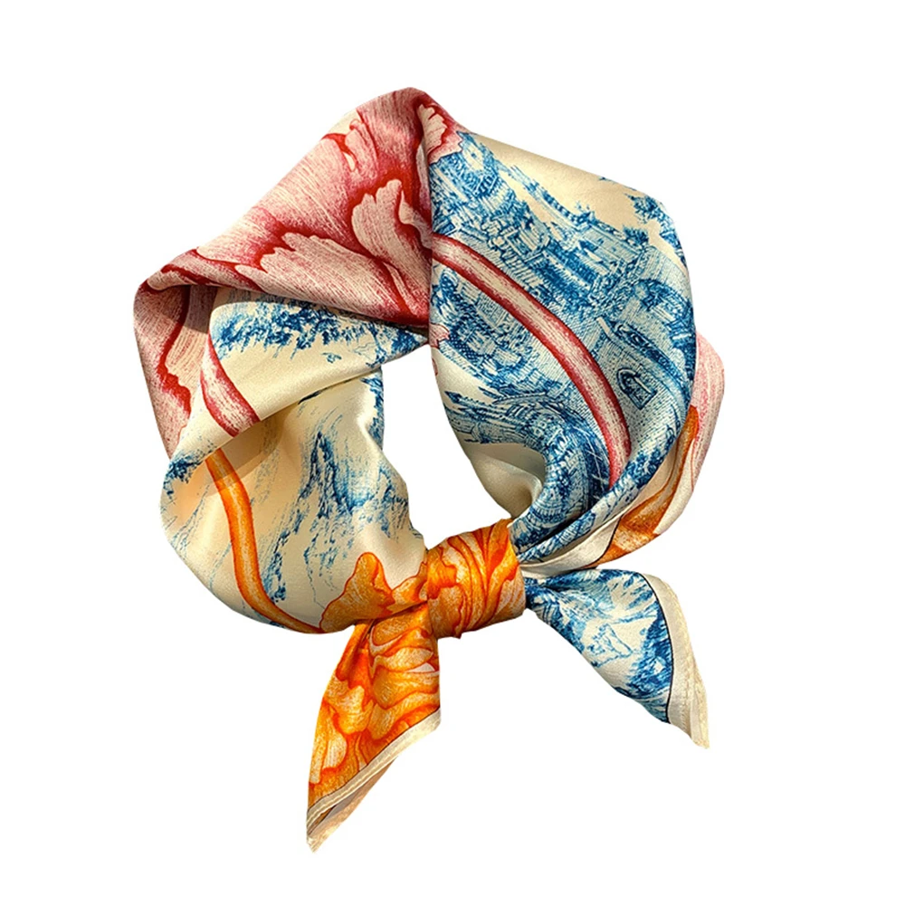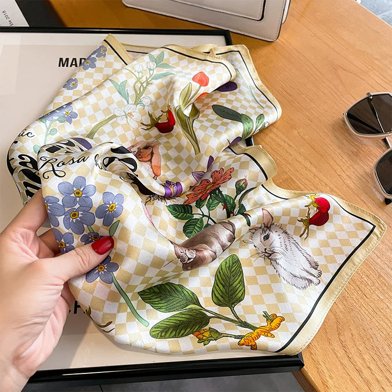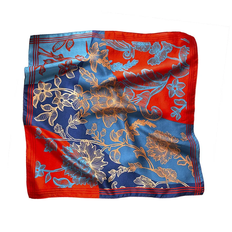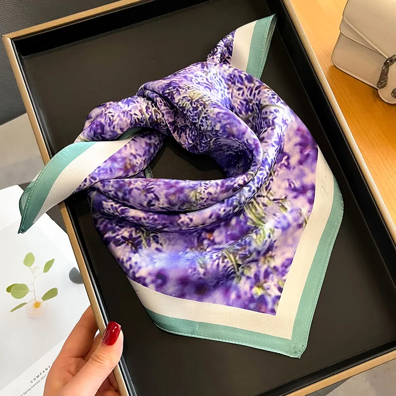 Women 100% Mulberry Real Silk Scarf 53cm Luxury Kerchief Spring Autumn Neckerchief Brand Headband Flowers Hijab Handbag Decorate