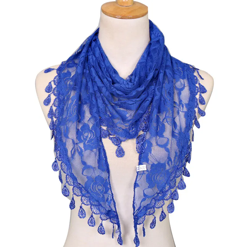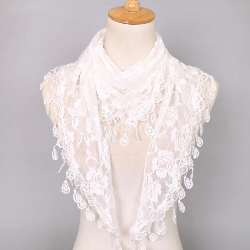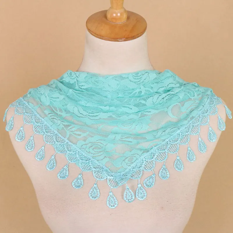 Women Pure Color Lace Tassel Headscarf Triangle Scarf Hollow Out Shawls Scarves