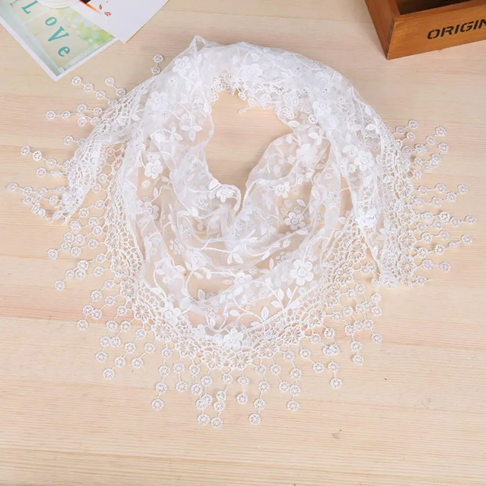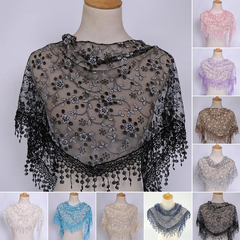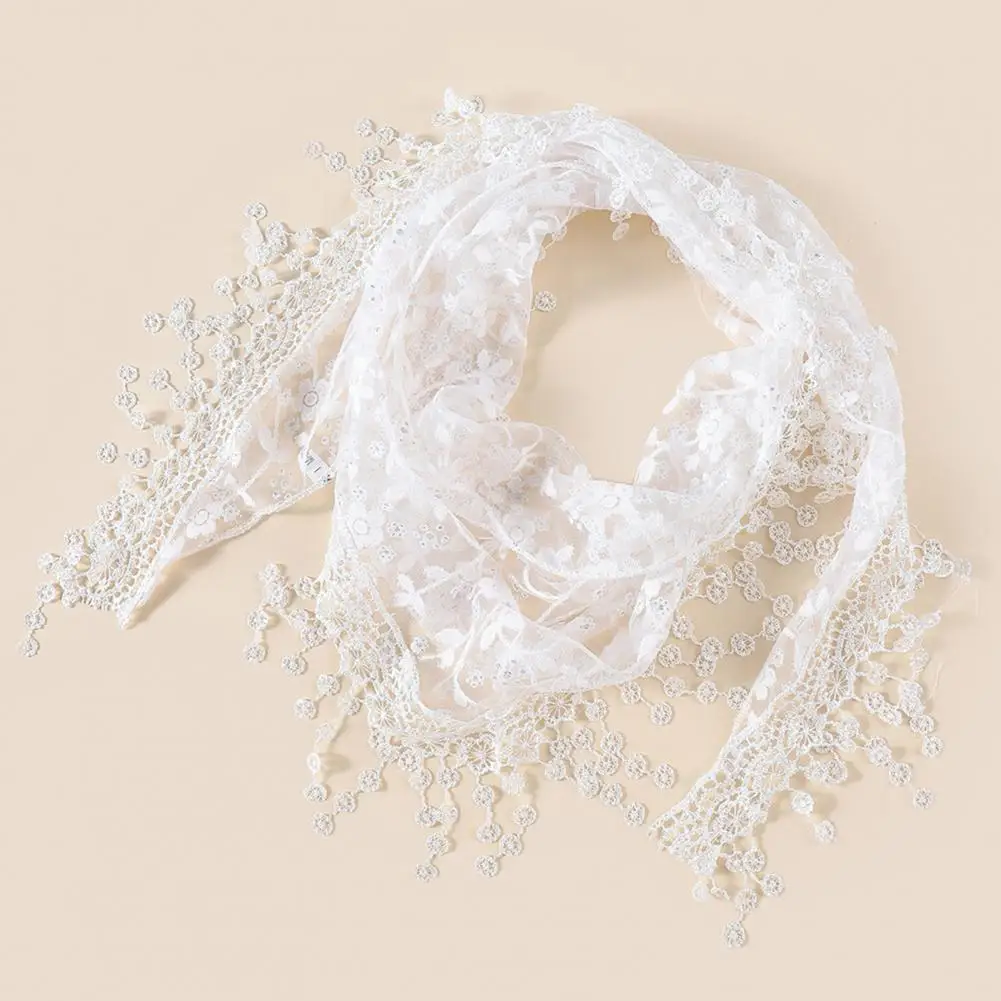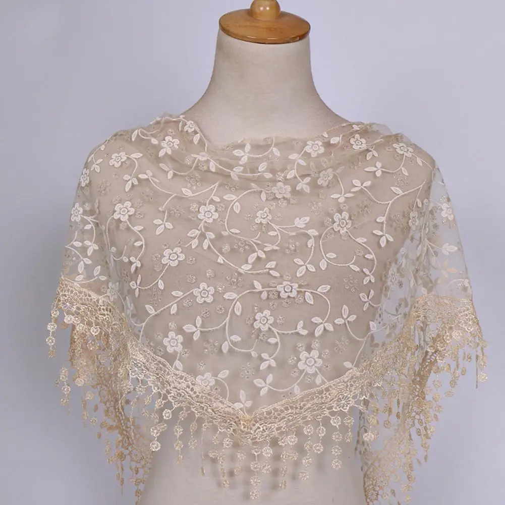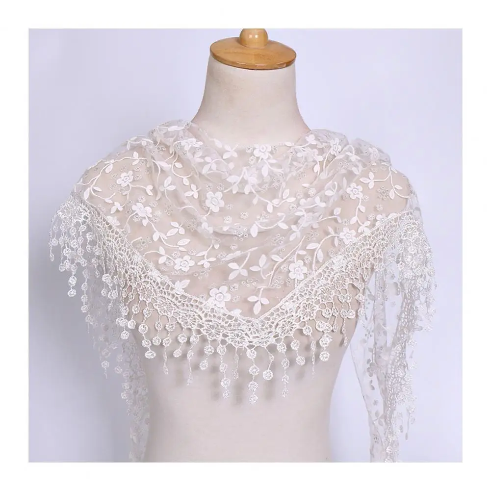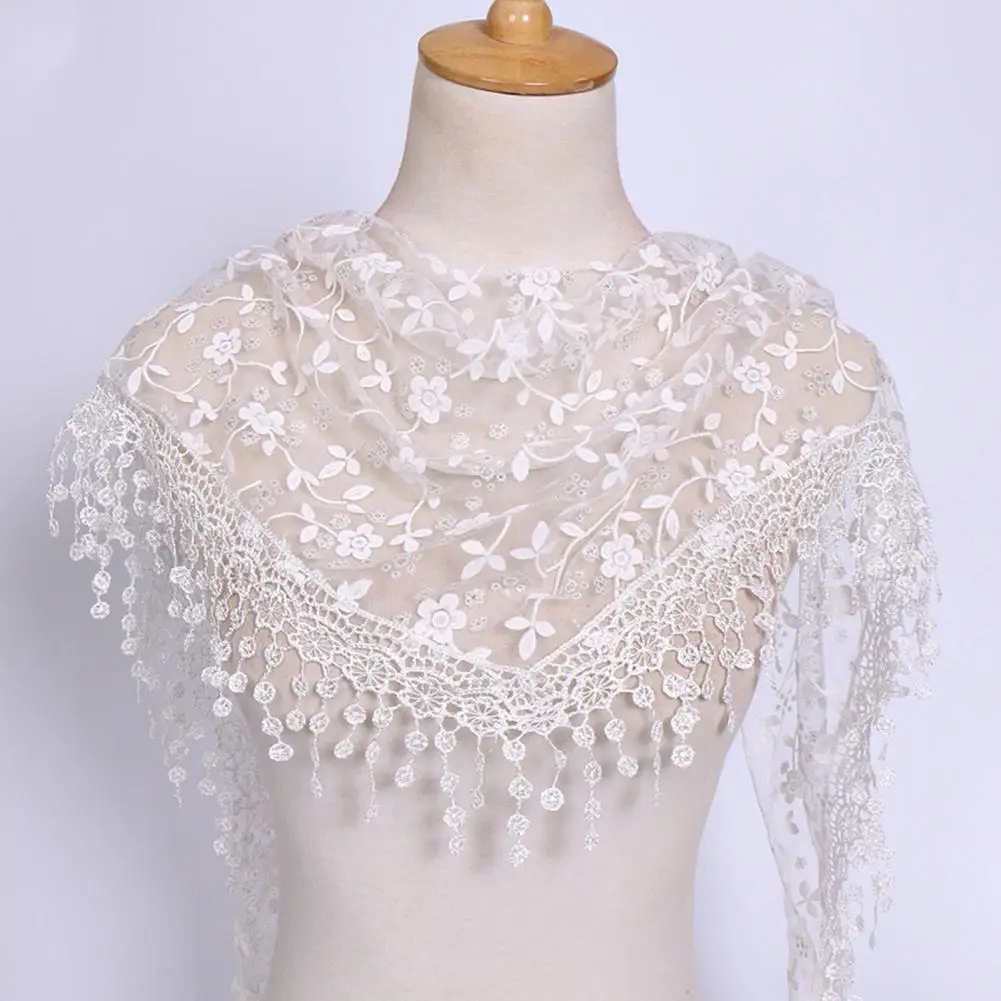 Women Lace Scarf Tassel Design Sunscreen Scarf Flower Pattern Church Triangle Scarf Prayer Shawl Headscarf Wedding Veils