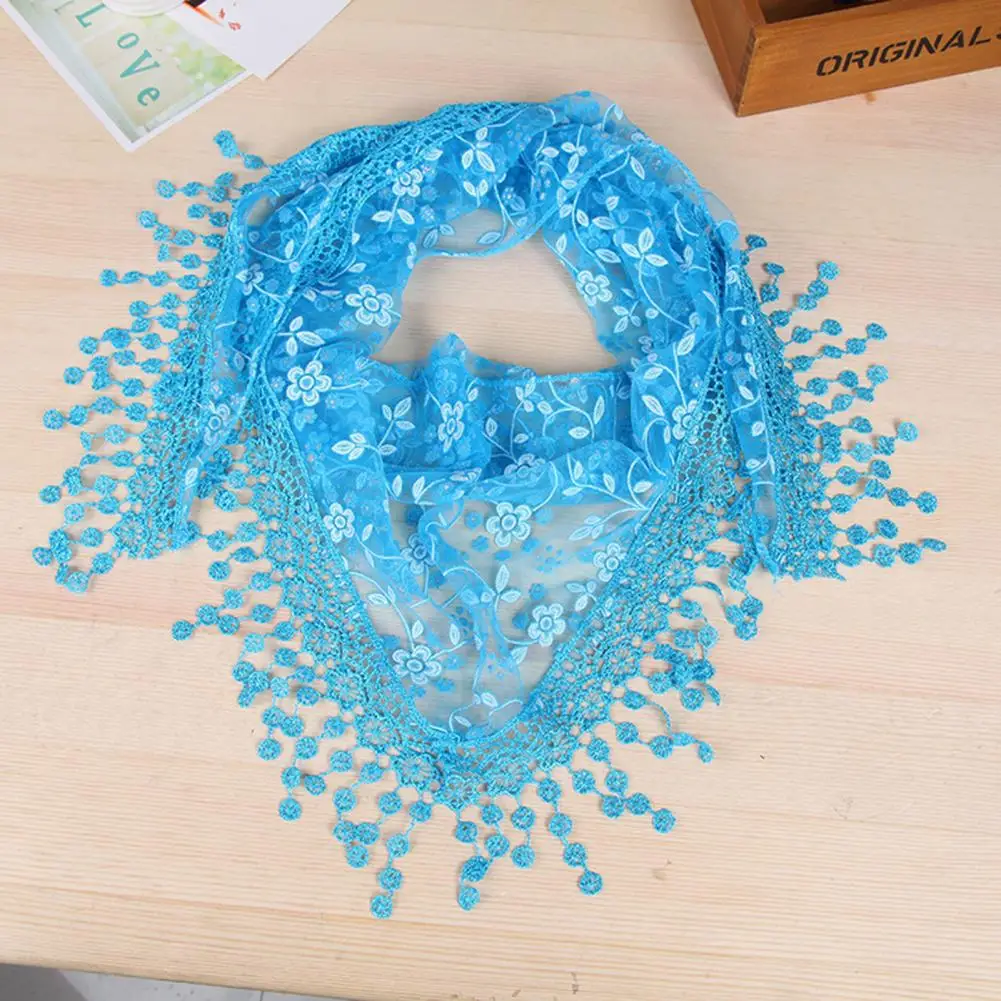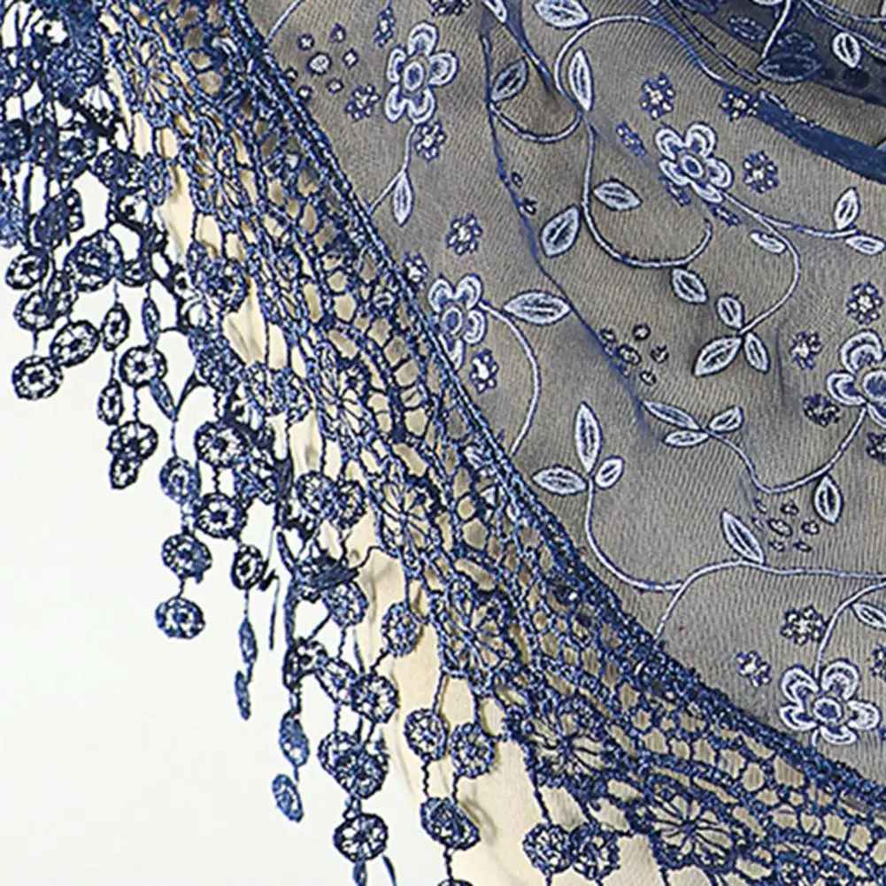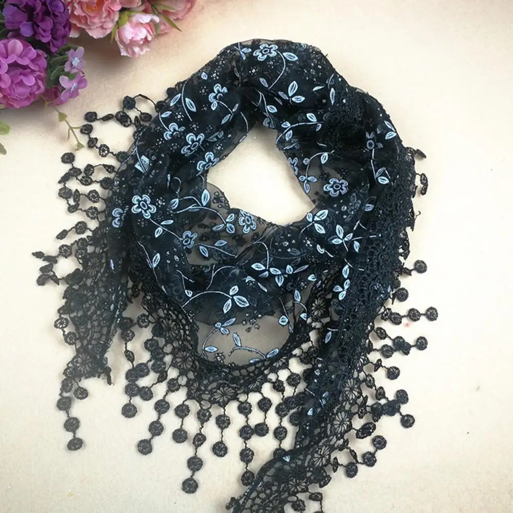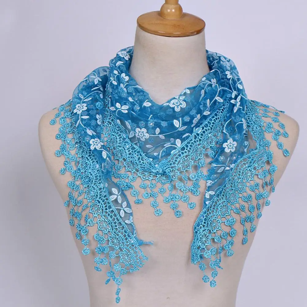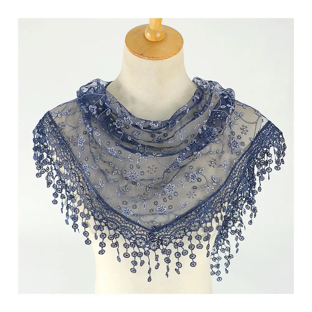 Women Lace Scarf Tassel Design Flower Pattern Church Triangle Scarf Prayer Shawl Daily Wear