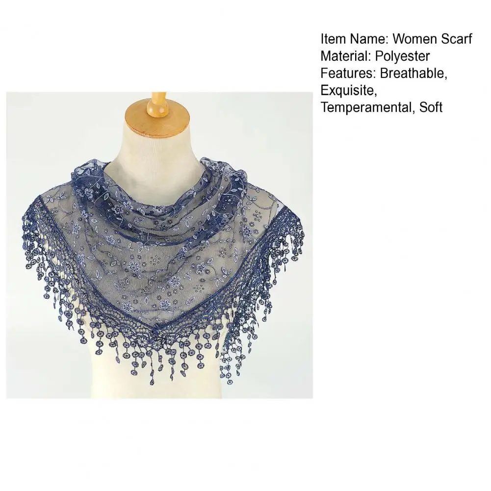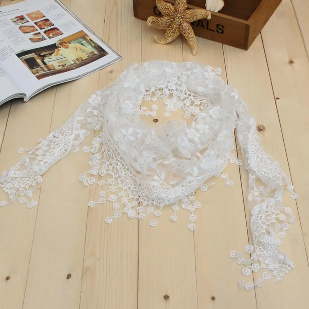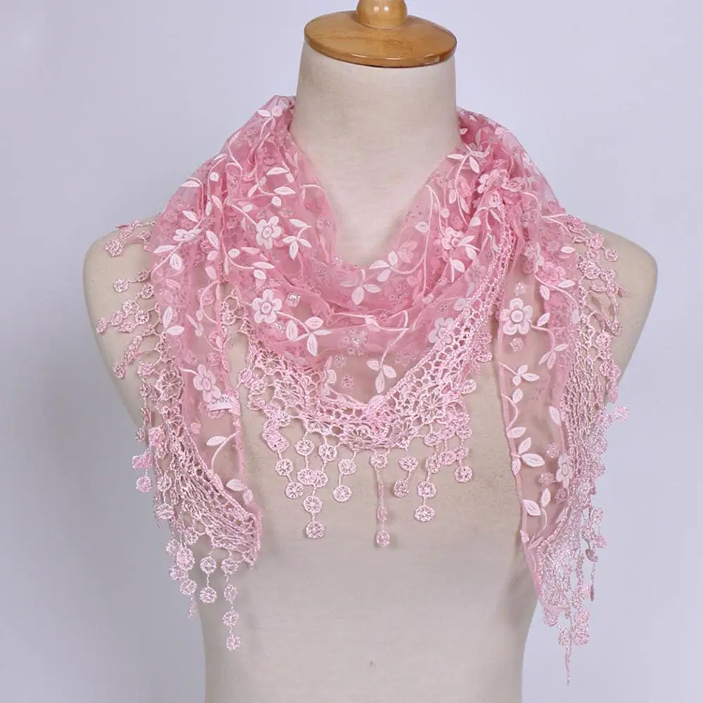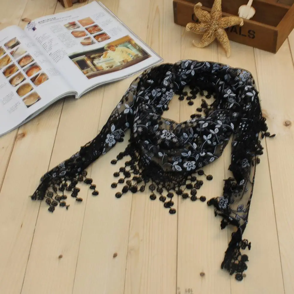 Women Lace Scarf Tassel Design Flower Pattern Church Triangle Scarf Prayer Shawl Daily Wear