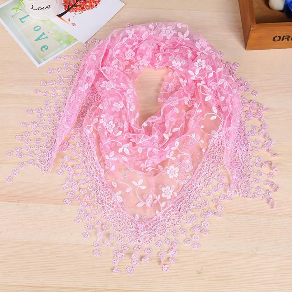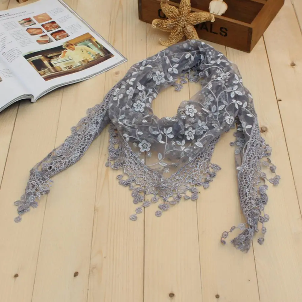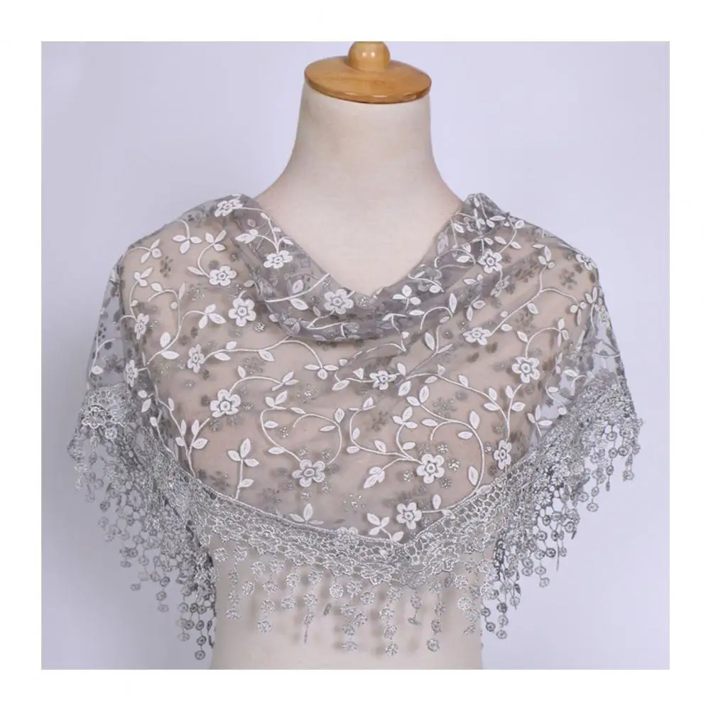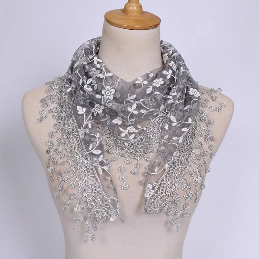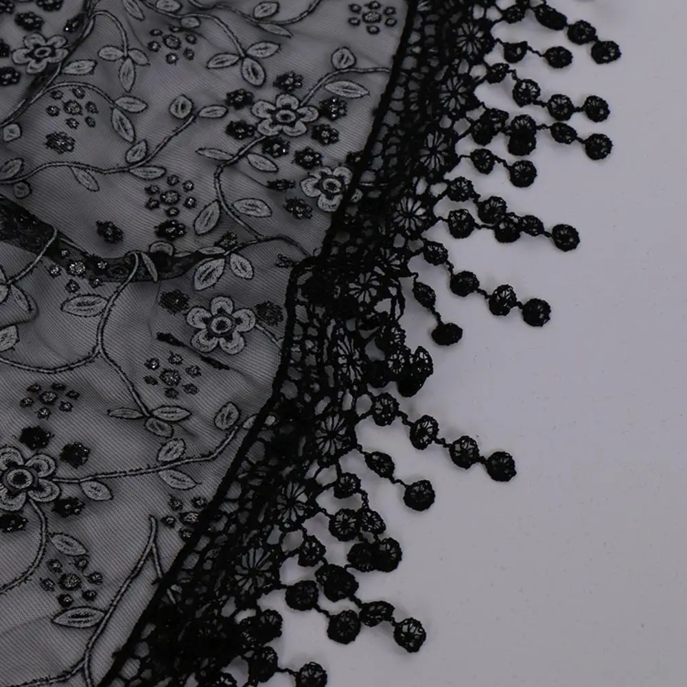 Women Lace Scarf Tassel Design Flower Pattern Church Triangle Scarf Prayer Shawl Daily Wear